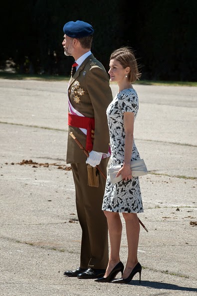 | (L-R) King Felipe of Spain and Queen Letizia of Spain attend the new Royal Guards Flag Ceremony at the 'El Rey' Military Barracks on May 22, 2015 in Madrid, Spain. |