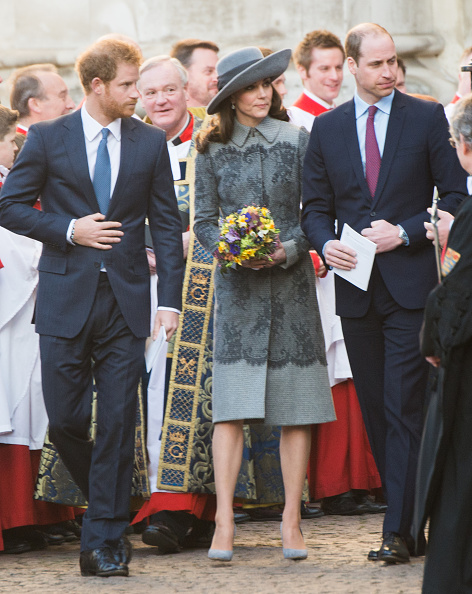 (L-R) Prince William, Duke of Cambridge, Catherine, Duchess of Cambridge and Prince Harry attend the Commonwealth Observance Day Service on March 14, 2016 in London, United Kingdom. |