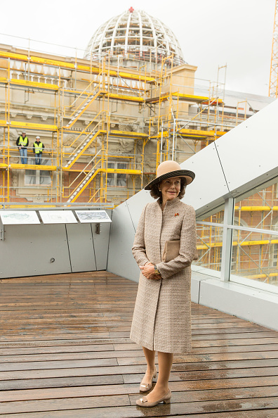 | Queen Silvia of Sweden visits the construction site of the Humboldt Forum in Berlin on October 5, 2016. |