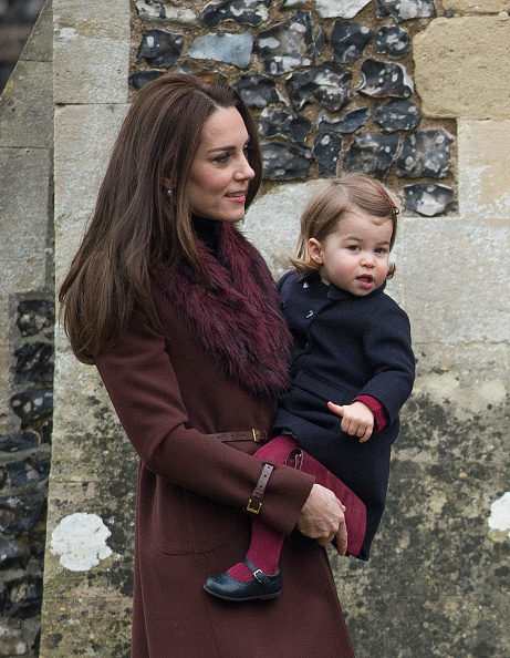 | Catherine, Duchess of Cambridge and Princess Charlotte of Cambridge attend Church on Christmas Day on December 25, 2016 in Bucklebury, Berkshire. |