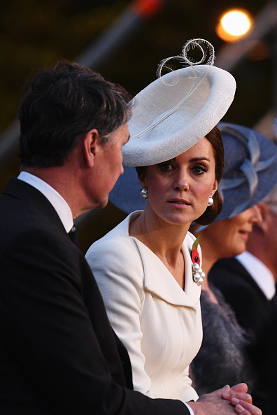 | Britain's Catherine, the Duchess of Cambridge, attends the Last Post ceremony at the Commonwealth War Graves Commission Ypres Memorial at the Menin Gate in Ypres, on July 30, 2017 |