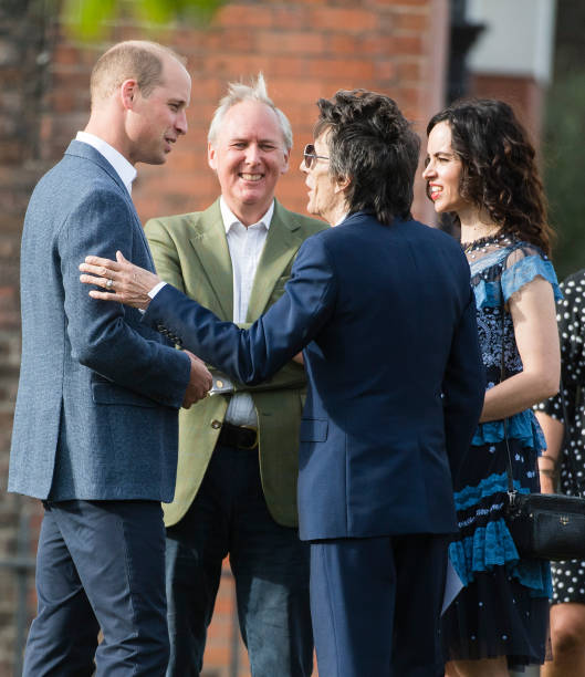 | Prince William, Duke of Cambridge meets Ronnie Wood as they attend 'The Tusk Rhino Trail' celebration 2018 at Kensington Palace in London, England. |