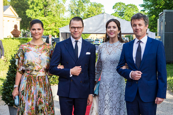 | (L-R) Crown Princess Victoria, Prince Daniel of Sweden, Crown Princess Mary and Crown Prince Frederik of Denmark attend an official dinner at Eric Ericssonhallen on May 29, 2017 in Stockholm, Sweden. |